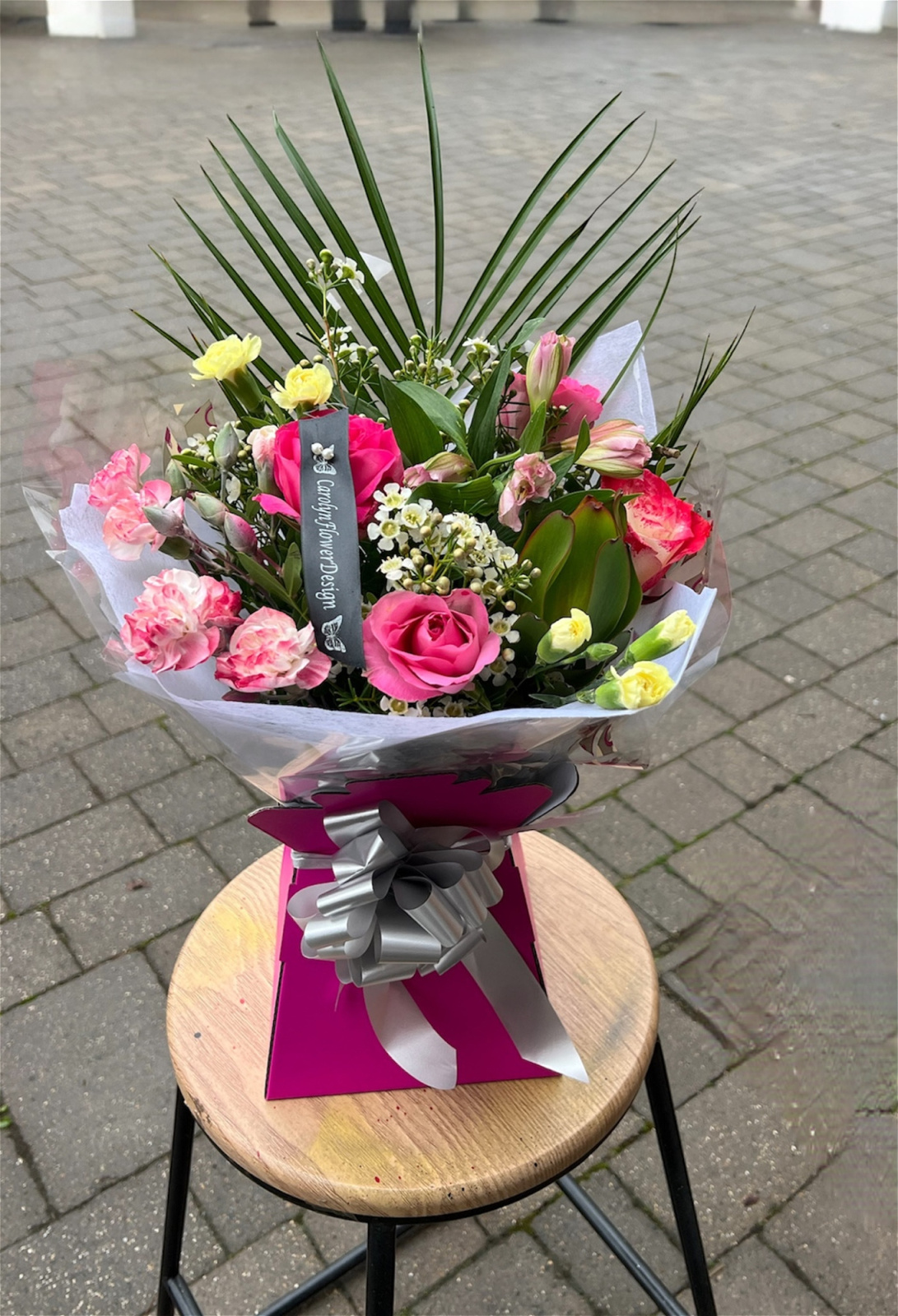 A beautiful hand-tied bouquet made with a seasonal mix of the freshest flowers available on the day. Each bouquet is unique, designed with the best blooms of the season to ensure quality, freshness, and natural charm.